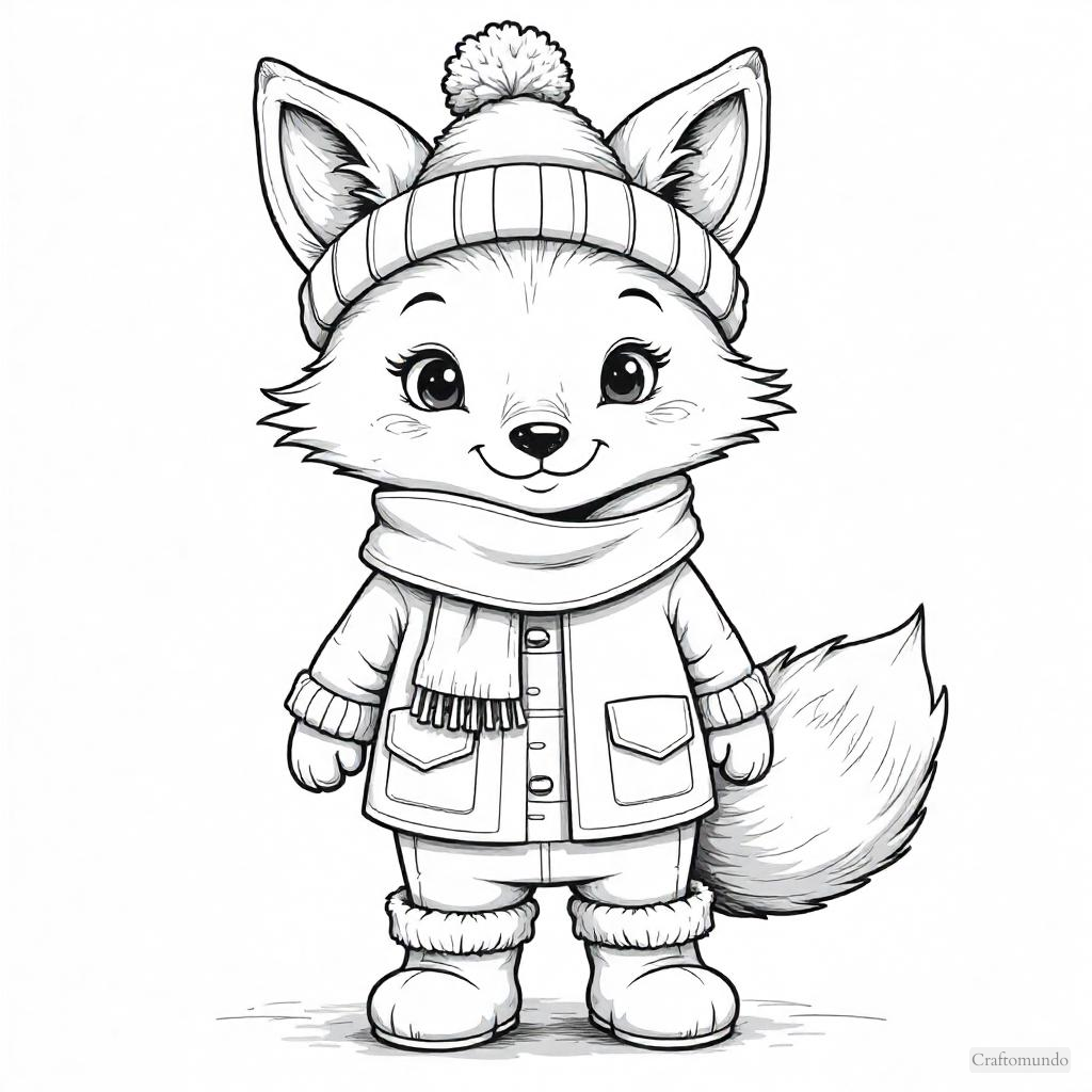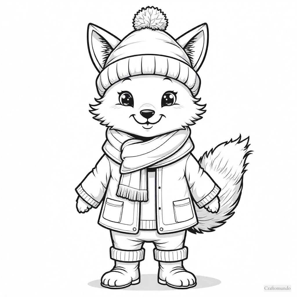 Winter animal-themed coloring pages often feature animals like penguins, polar bears, owls, and foxes wearing cozy scarves and hats.