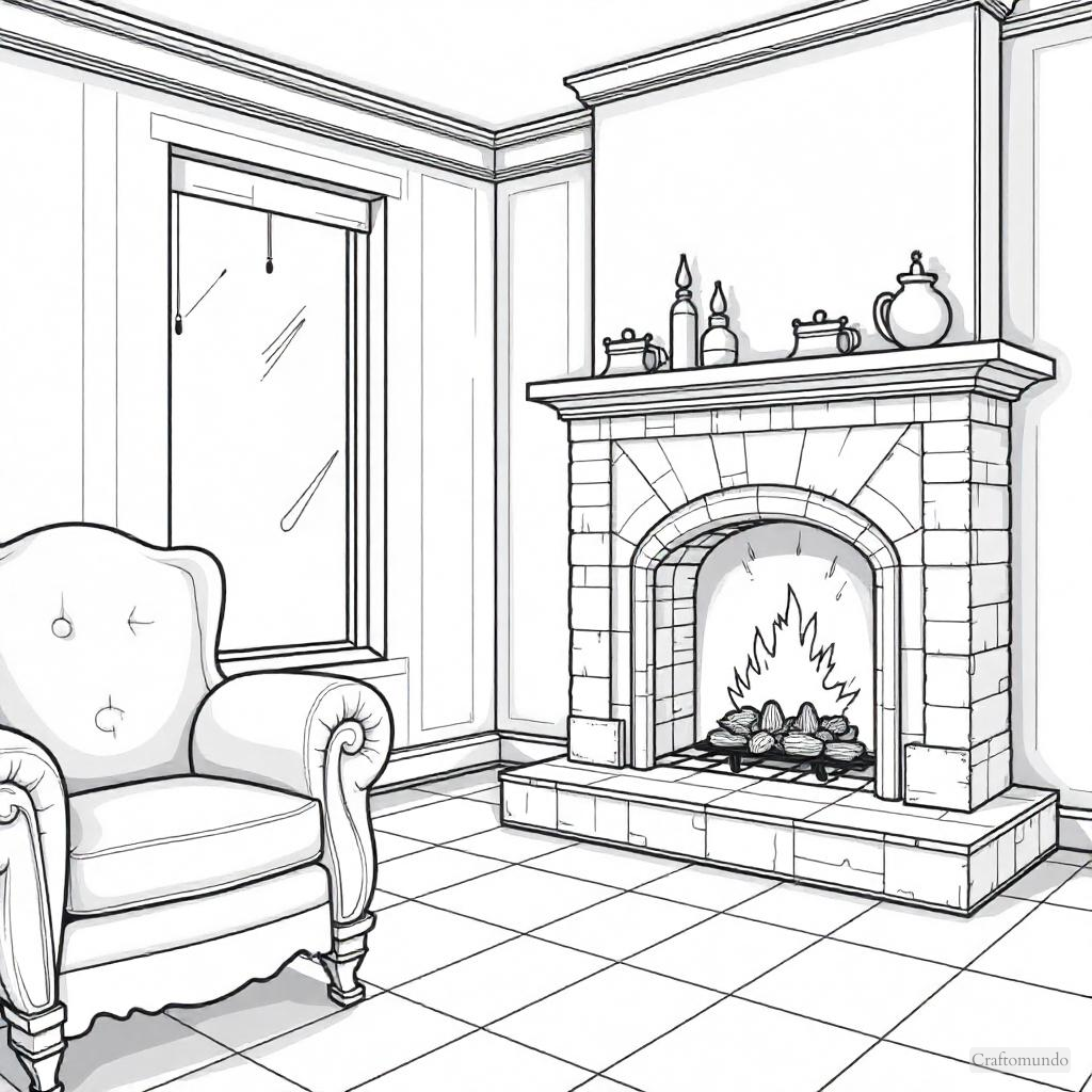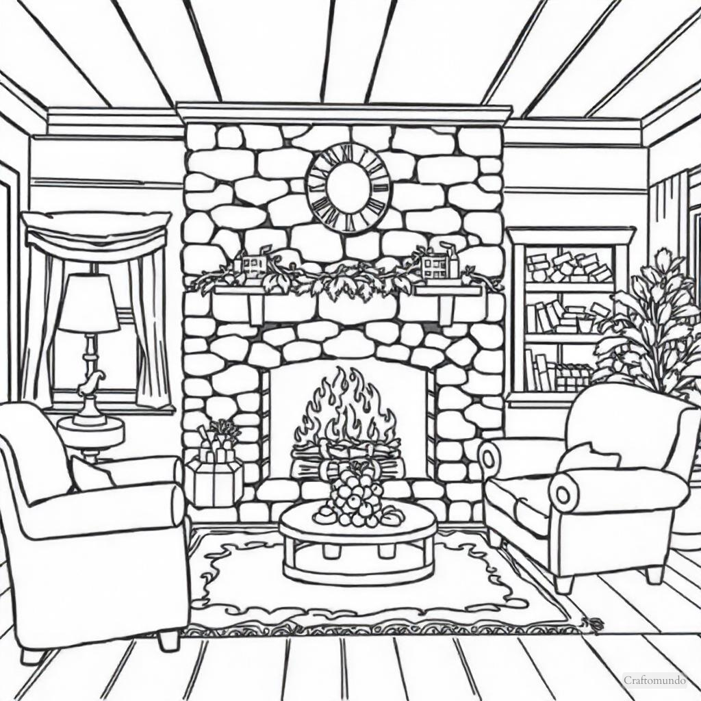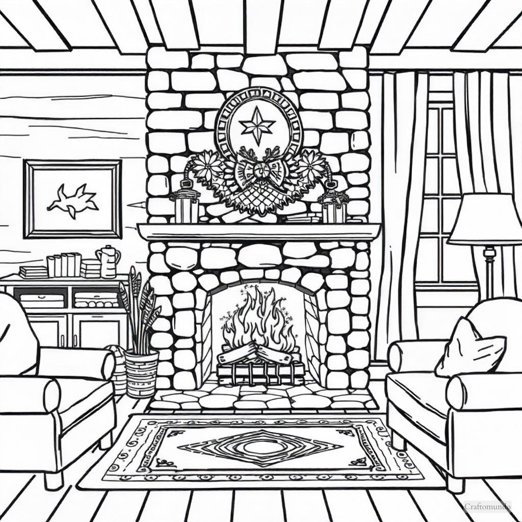 Coloring pages featuring warm interiors with crackling fireplaces, mugs of hot cocoa, and snuggly blankets bring a sense of comfort and warmth.