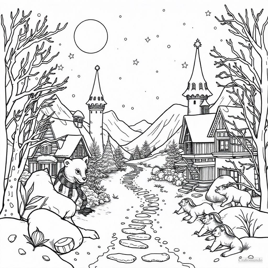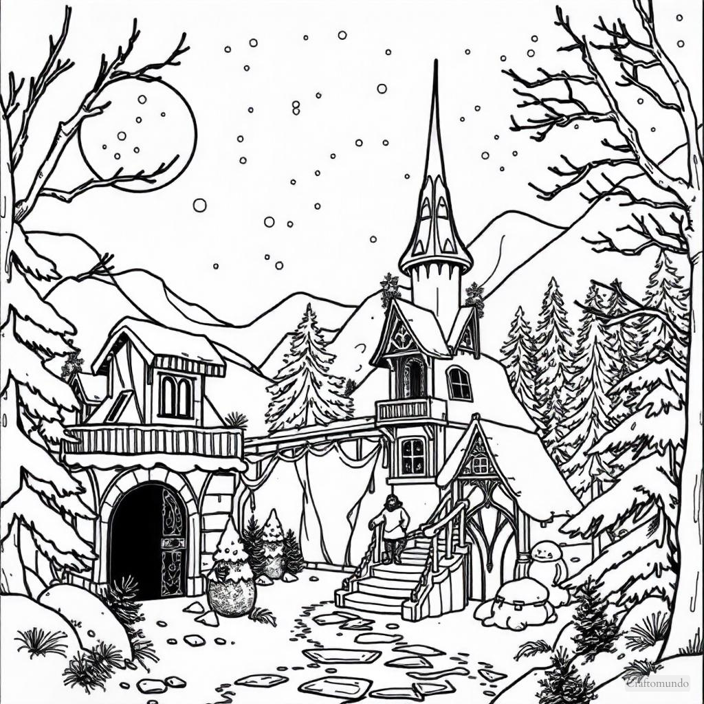 If you love stories of enchanted forests and magical lands, fantasy winter coloring pages will spark your imagination. These pages often feature whimsical castles, mythical creatures, and magical landscapes covered in snow.