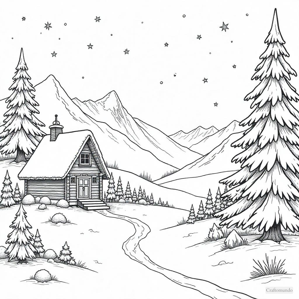 This type of coloring page is perfect for adults looking to de-stress after a busy holiday season. You can experiment with shading techniques to give depth to the snowdrifts or create a glowing effect by adding warm tones to the cabin windows.